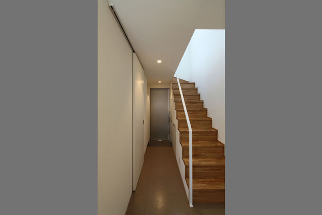 各戸のキッチンや水廻りを下階に配して上階は居室やバルコニーとすることで、暗くなりがちな1階住戸を無くし、共用スペースも最小限となるよう計画してあります。