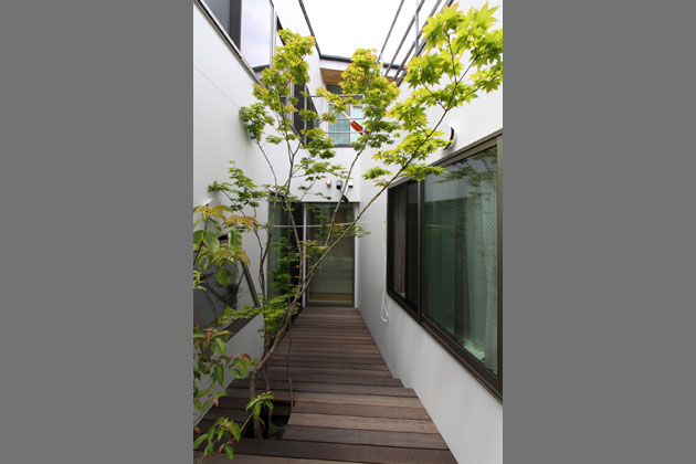 1階の室は、2階の床高さに呼応しそれぞれ機能するよう配すことでコンパクトにまとめ、全体としては、限られたスペースでありながら豊かな空間とすることができました。